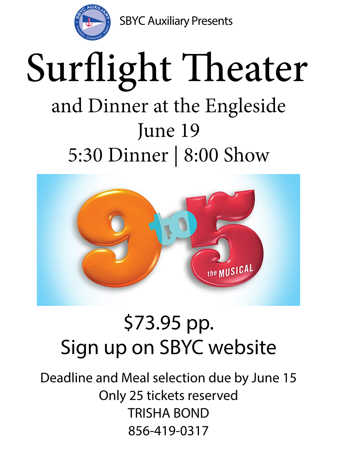 Meet at the Engleside at 5:30 for dinner and then to Surflight Theatre for an 8:00pm show time.